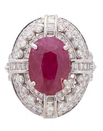 44. Art Deco Style Platinum, Emerald and Diamond Ring, center octagonal step cut emerald, wt. approx. 2.72 cts.; accented with 80 baguette and round brilliant cut diamonds, total wt. approx. 0.49 ct.; size 6.75; AIGL report. [$3000/5000]