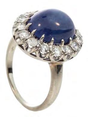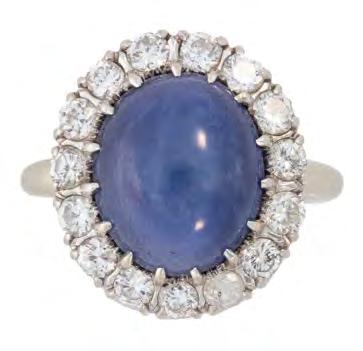 10. 14 kt. White Gold, Star Sapphire and Diamond Ring, marked, center oval cabochon star sapphire accented by numerous round diamonds, size 7.5; 4.95 dwts. [$500/700]