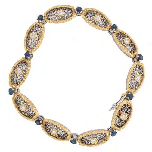 33. Buccellati Style 18 kt. Yellow and White Gold, Sapphire and Diamond Filigree Bracelet, made in Florence, openwork filigree design mounted with 10 sapphires and 10 diamonds, l. 7 1/4 in.; 16.22 dwts. [$7000/9000]