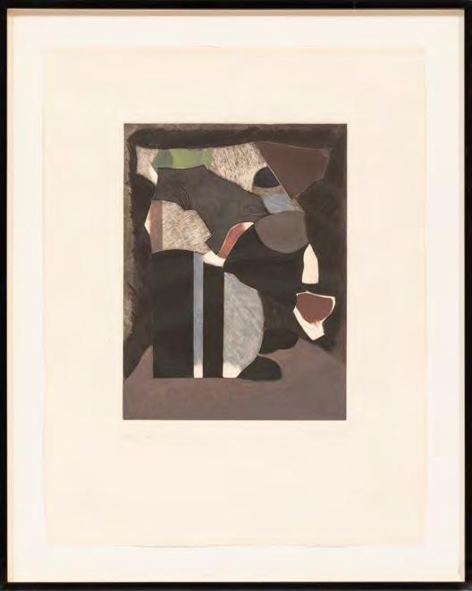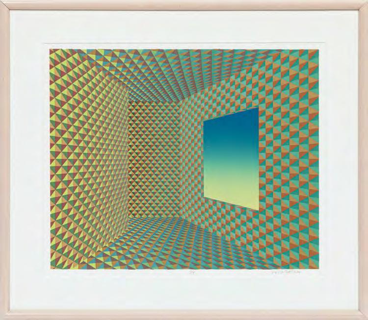 676. Krista Jurisich (American/Louisiana, b. 1950), “Geometric Window”, hand-enhanced silkscreen, pencilsigned lower right, numbered “2/8” lower center, sheet 23 in. x 29 in., framed, overall 26 1/4 in. x 30 1/8 in. x 1 in.