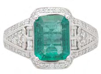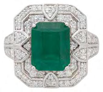 49. Platinum, Emerald and Diamond Ring, center octagonal mixed cut emerald, wt. approx. 3.19 cts.; accented by 102 round brilliant cut diamonds, total wt. approx. 0.80 ct.; size 6.75; GGA report. [$5000/7000]