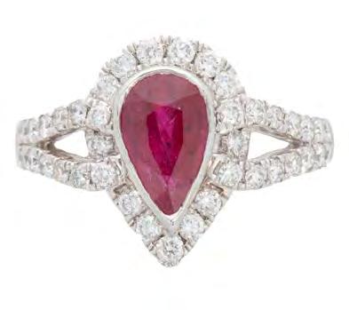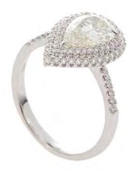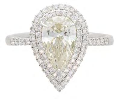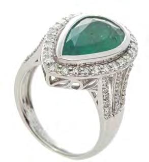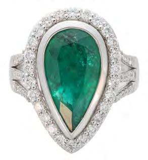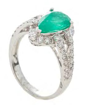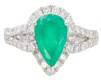 42. Platinum, Emerald and Diamond Ring, center GIA certified Colombian pear mixed cut emerald, wt. approx. 2.16 cts.; bezel and shoulders with 41 round brilliant cut diamonds, total wt. approx. 0.89 ct.; size 7.25; GGA and GIA reports. [$4000/6000]