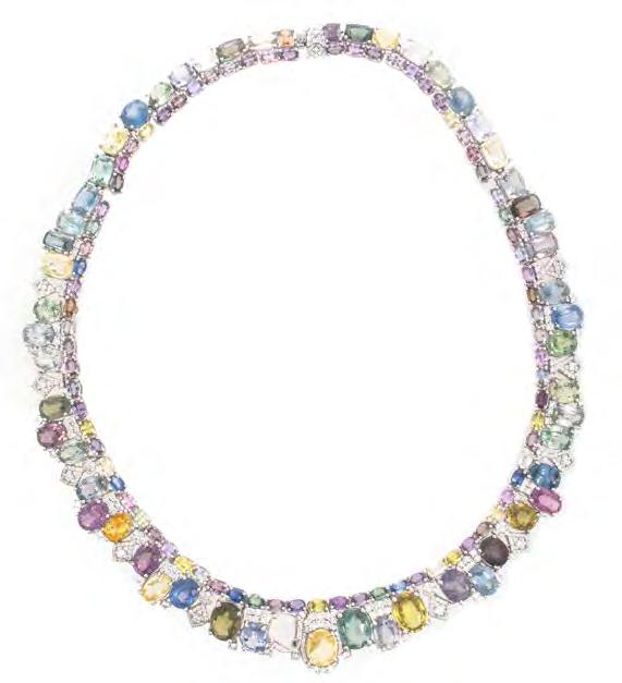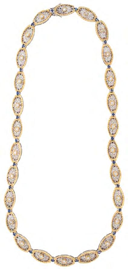 34. Buccellati Style 18 kt. Yellow and White Gold, Sapphire and Diamond Filigree Necklace, made in Florence, openwork filigree design mounted with 26 sapphires and 26 diamonds, l. 18 in.; 45.79 dwts., l. 18 in [$20,000/30,000]