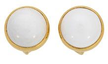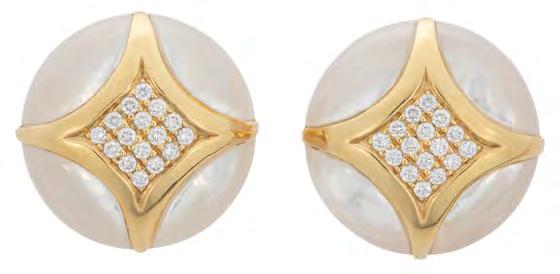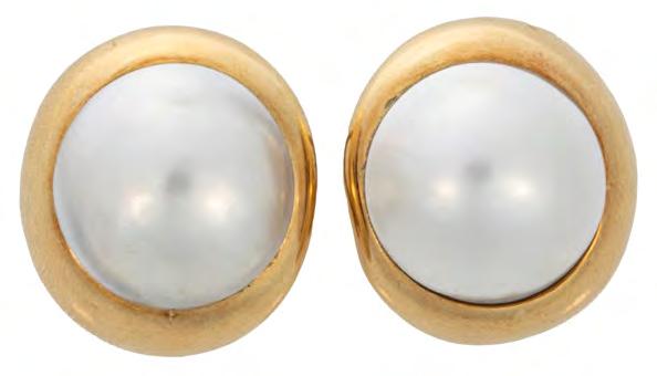 39. Pair of David Webb 18 kt. Yellow Gold and Mabe Pearl Earrings, marked, l. 1 1/8 in.; 28.09 dwts. [$7000/9000]