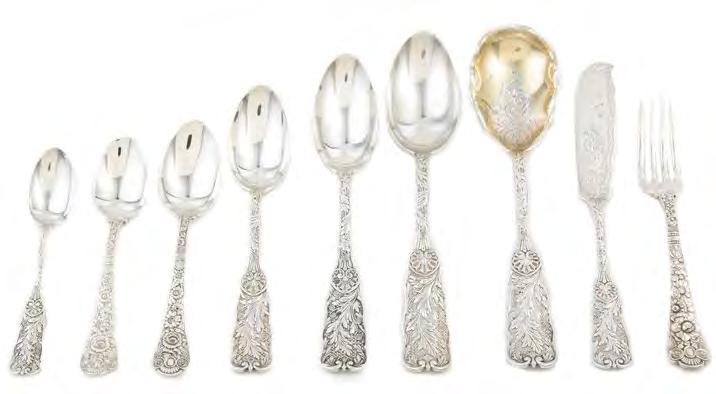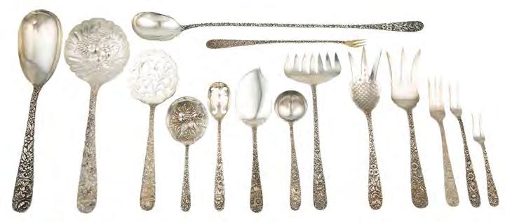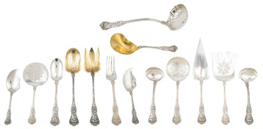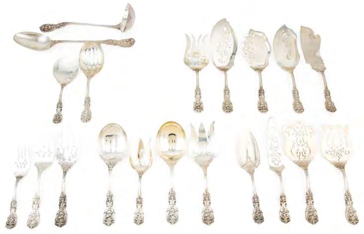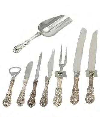 The Jolly Collection encompasses several flatware services, rare antique serving pieces and extensive hollow ware from goblets and juleps to candelabra, teapots, cocktail shakers, platters and an asparagus tray. In short, anything and everything a proper Southern gentleman would need to entertain in great style.