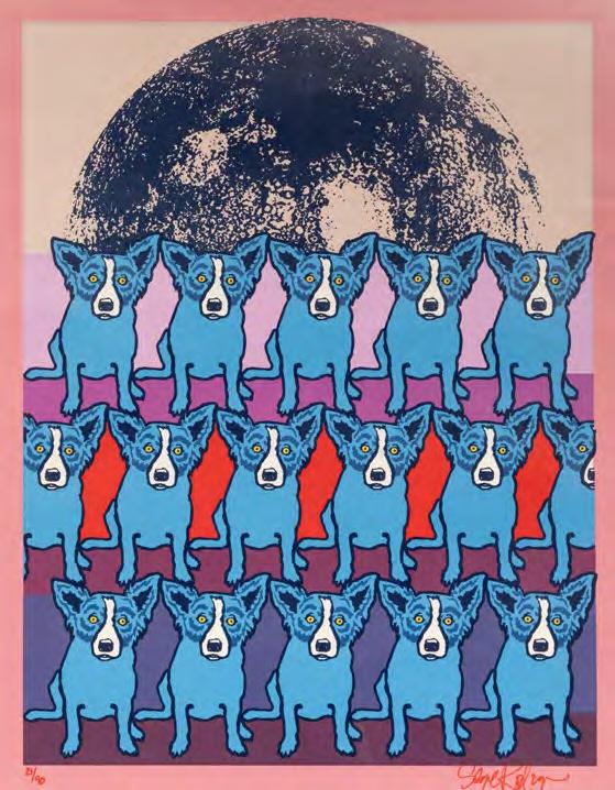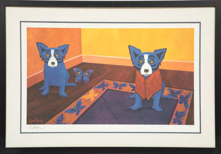 683. George Rodrigue (American/Louisiana, 1944-2013), “Carmel Edition I”, 1991, silkscreen, signed and numbered “78/90” lower right, sheet 34 3/4 in. x 26 in., framed, overall 39 1/2 in. x 32 1/2 in. x 3/4 in.