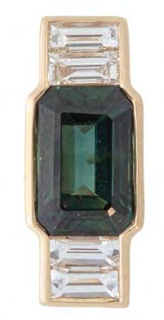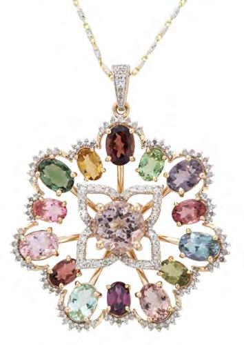 38. 14 kt. Yellow Gold, Emerald and Diamond Pendant on Chain, center octagonal mixed cut emerald, wt. approx. 1.00 ct.; round sunburst bezel with numerous round brilliant cut diamonds, total wt. approx. 0.24 cts.; pendant dia. 3/4 in.; chain l. 18 in.; GGA report. [$1500/2500]