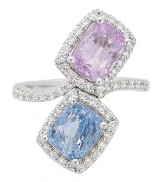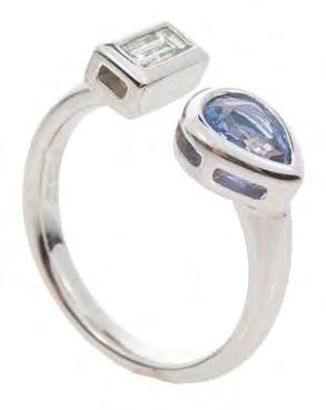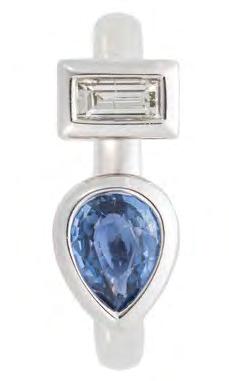 16. Platinum, Sapphire and Diamond “Toi et Moi” Ring, center pear mixed cut blue sapphire, wt. approx. 0.92 ct.; and rectangular step cut diamond, wt. approx. 0.24 ct., G color, SI1 clarity; size 7; AIGL report. [$1800/2500]