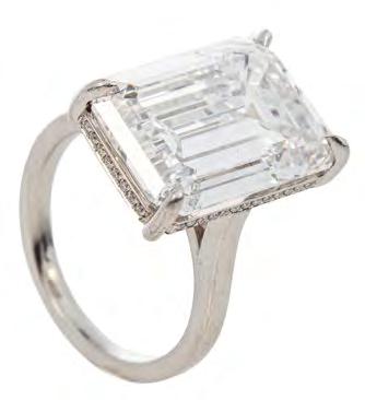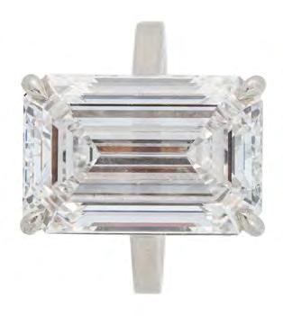 64. Lauren B Platinum and Lab Grown Diamond Solitaire Ring, band marked “LB” and “PT950 USA”, center emerald cut laboratory grown diamond, wt. approx. 12.78 cts., E color, VS1 clarity; size 5.25; GIA certified with copy of certificate available. [$3000/5000]