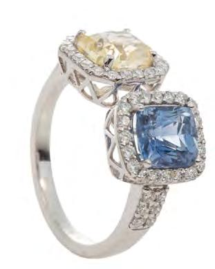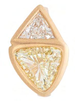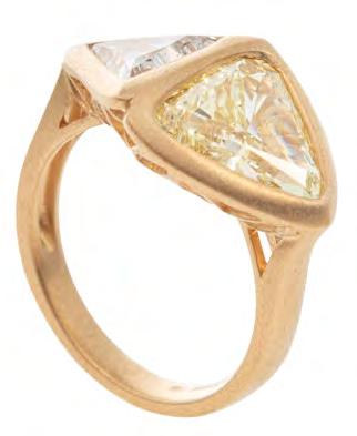 29. Yellow Gold, Yellow Diamond and Diamond “Toi et Moi” Ring, triangular brilliant cut natural fancy yellow diamond, wt. approx. 2.18 cts.; and triangular brilliant cut diamond, wt. approx. 1.10 cts., G-H color, SI1 clarity; size 5.5; GGA report. [$20,000/30,000]