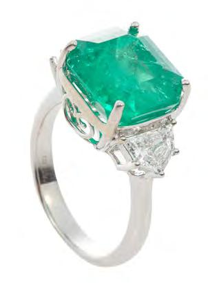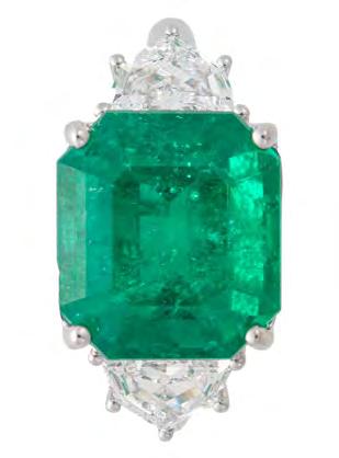 54. 18 kt. White Gold, Colombian Emerald and Diamond Ring, center GIA certified octagonal step cut Colombian emerald, wt. approx. 7.47 cts.; flanked by 2 shield step cut diamonds, total wt. approx. 1.02 cts., G color, VS1 clarity; size 6.25; AIGL and GIA reports. [$30,000/40,000]