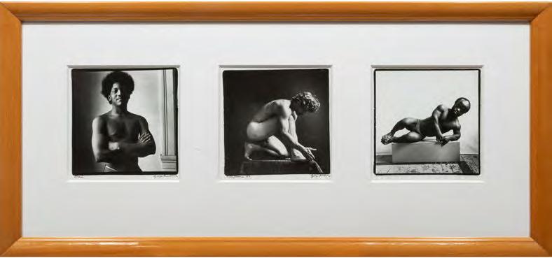 680. George Valentine Dureau (American/Louisiana, 1930-2014), “Erni, Troy Brown and Wendell Platt”, 3 gelatin silver prints, each pen-signed lower right, each titled lower left, each 6 3/4 in. x 6 3/4 in., framed together, overall 16 1/4 in. x 34 3/4 in. x 1 3/4 in.