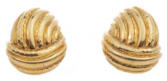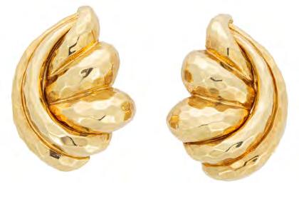 22. Henry Dunay 18 kt. Yellow Gold Hammered Twist Earrings, marked, numbered “A6826” clip backing, l. 1 1/4 in.; 17.33 dwts., l. 1 1/4 in. [$6000/8000]