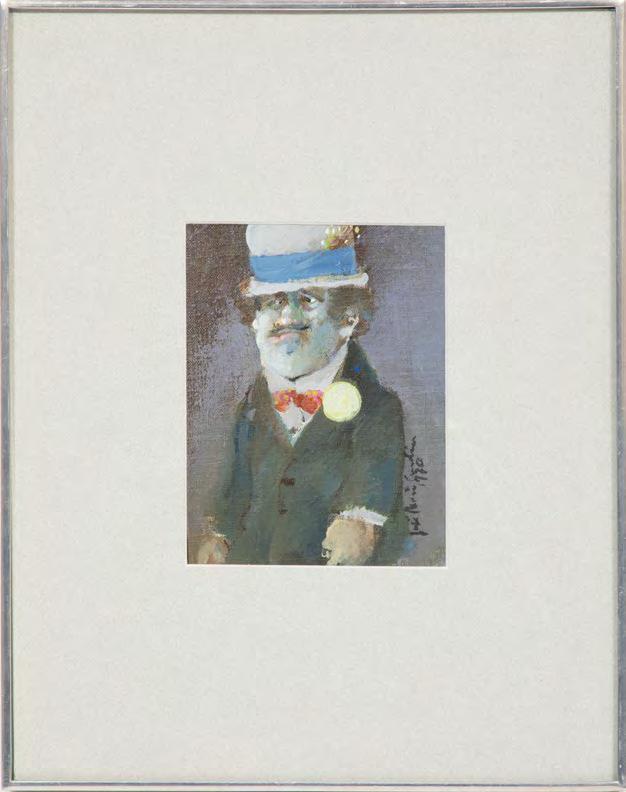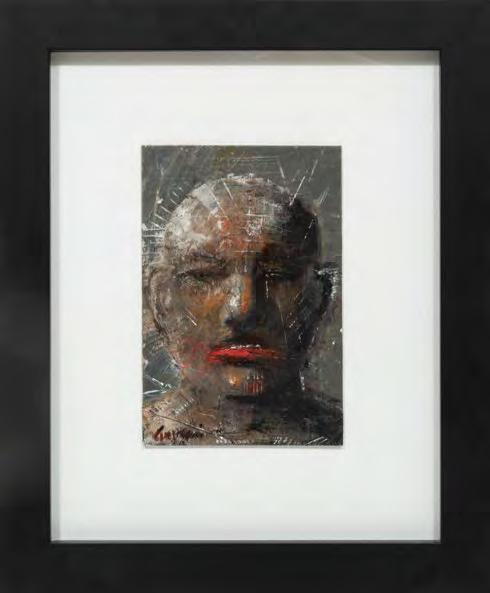 674. David Harouni (Iranian/ Louisiana, b. 1962), “Untitled: Head”, oil and mixed media on metal panel, signed lower left, 9 in. x 6 in., framed, overall 17 3/4 in. x 14 3/4 in. x 1 1/4 in.