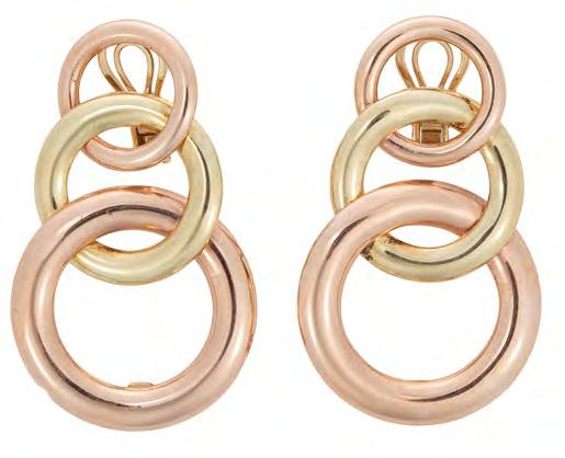 25. Tiffany & Co. 14 kt. Yellow and Rose Gold Convertible Brooch Earrings, marked, l. (each) 2 in.; 13.06 dwts. [$4000/6000]