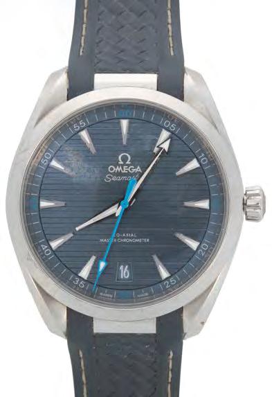 4. Omega Seamaster Aqua Terra Stainless Watch, Master Chronometer caliber 8900, ref. 220.12.41.21.06.002, serial #89238163, 41mm, automatic, transparent caseback, sapphire crystal, water resistant to 150 meters, grey rubber strap with deployant clasp, with box, instructions, and cards. [$1500/2500]