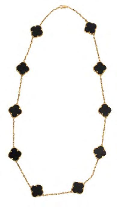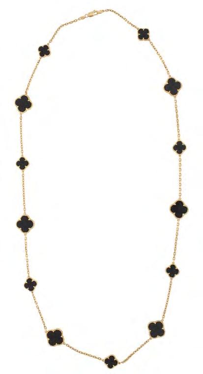 31. Italian 18 kt. Yellow Gold and Onyx Van Cleef & Arpels Alhambra Style Necklace, l. 24 in.; 25.82 dwts. [$5000/7000]