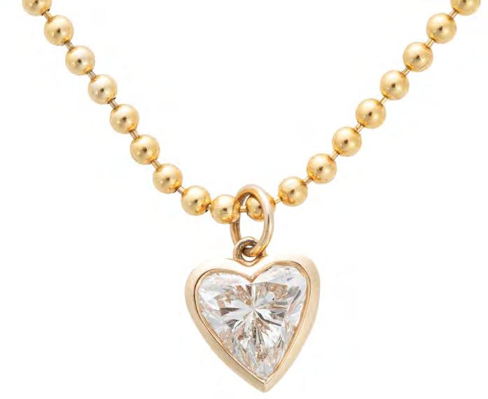 28. 14 kt. Yellow Gold and Heart Shape Diamond Pendant on Chain, center bezel set heart shape diamond, wt. approx. 2.00 cts., H-I color, SI2-SI3 clarity; chain l. 23 in.; GGA report. [$12,000/18,000]