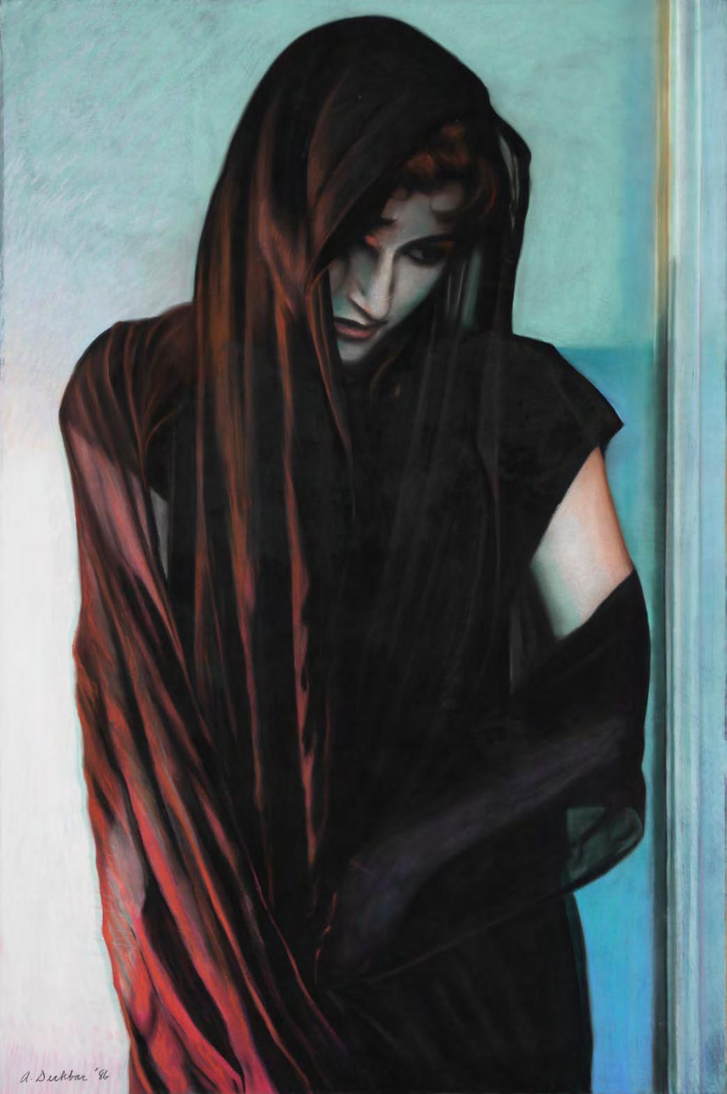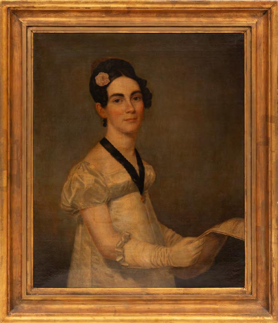 675. Jeffrey Stolier (American/ Louisiana, 20th c.), “Portrait of a Woman”, oil on canvas, signed lower right, 24 in. x 18 in., framed, overall 24 1/2 in. x 18 1/2 in. x 1 1/2 in. [$700/1000]