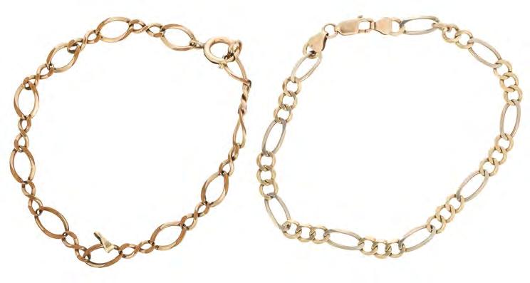 18. Two Italian 14 kt. Yellow Gold Chain Bracelets, marked, l. 8 1/4 in. and 8 1/2 in.; 7.52 dwts. [$400/600]