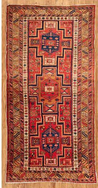 687.Persian Karaja Runner, red ground, repeating medallions, 2 ft. 8 in. x 12 ft. 9 in.