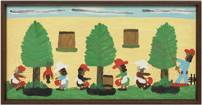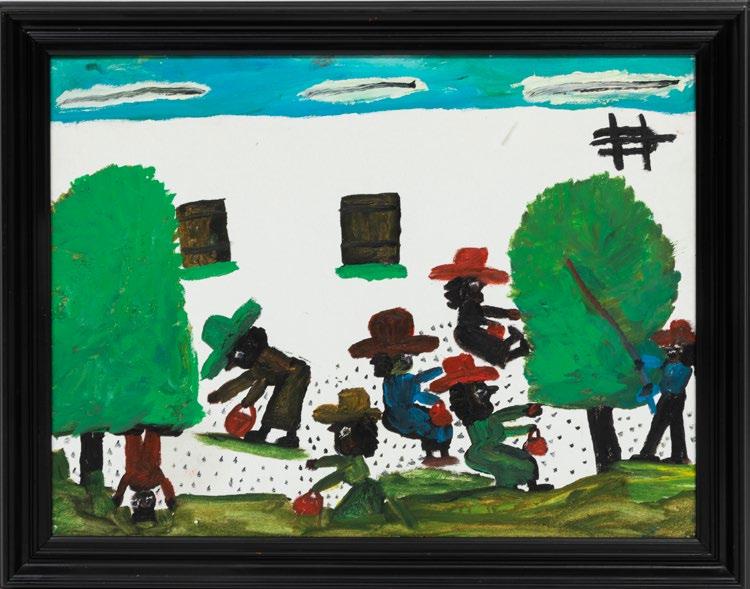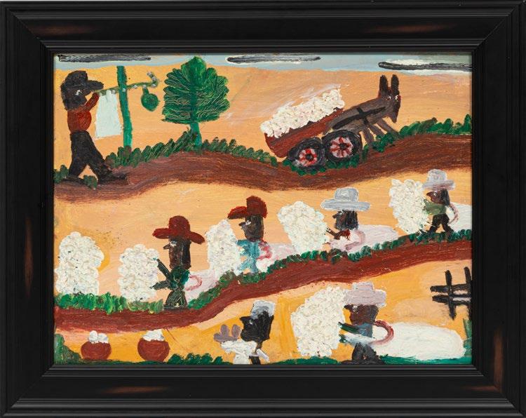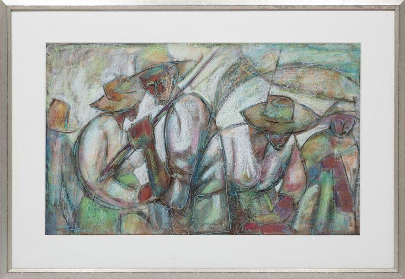 401. William Tolliver, American/Louisiana, 1951-2000, “Cotton Choppers”, pastel and mixed media on paper, signed lower left, inscribed “86294” lower right edge and en verso, framed. 24 5/8 x 38 5/8 in. (62.5 x 98.1 cm.), Frame: 32 x 46 x 1 1/2 in. (81.3 x 116.8 x 3.8 cm.)