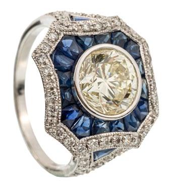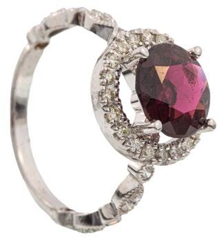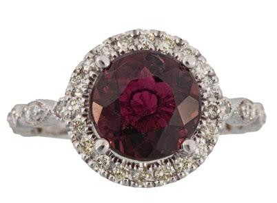 15. 18 kt. White Gold, Tourmaline and Diamond Ring, center round tourmaline, wt. approx. 2.02 cts.; bezel and shoulders set with numerous round diamonds, total wt. approx. 0.40 ct.; size 7 [$500 - 700]