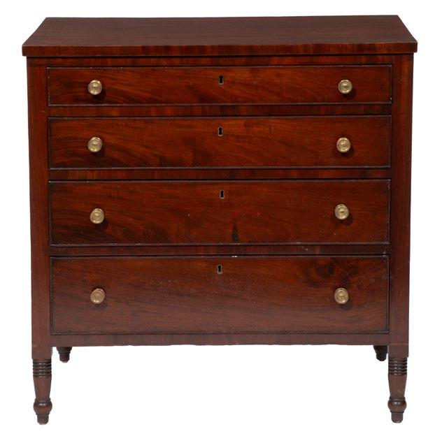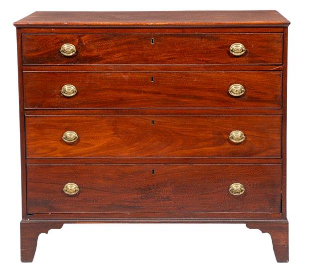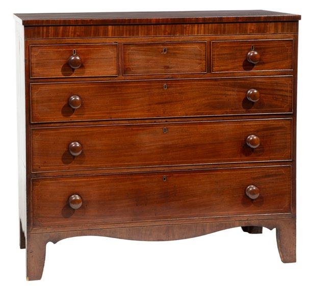 39. George III Mahogany Bachelor’s Chest, 18th c., molded top, dressing slide, two short over four graduated drawers, bracket feet, 33 1/2 x 18 x 31 in. (85.1 x 45.7 x 78.7 cm.) [$700 - 1,000]