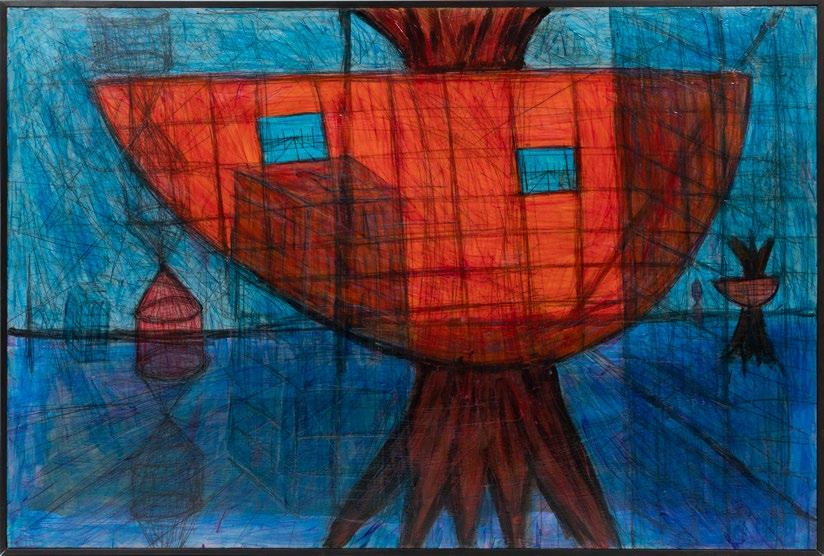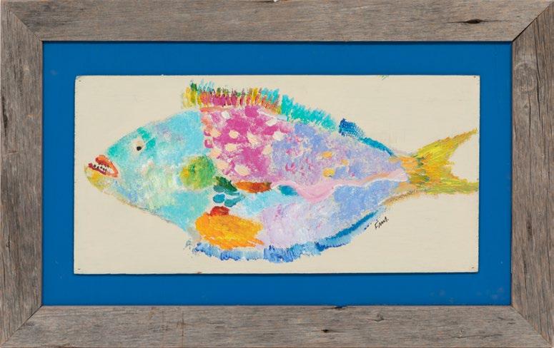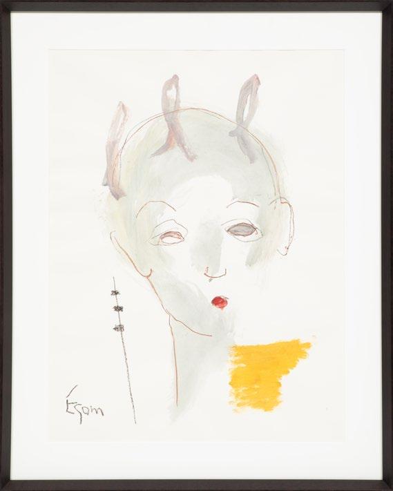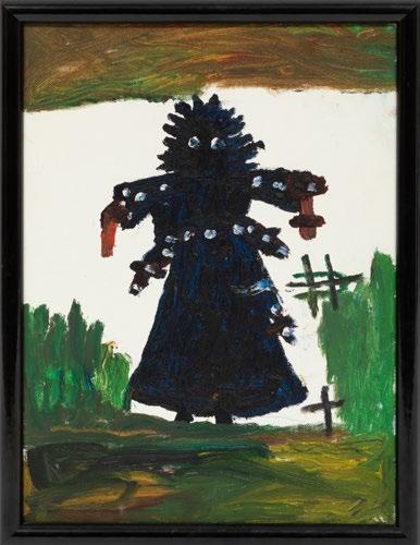 406. Tony Mose, American/Louisiana, b. 1968, “Untitled”, acrylic wash and mixed media on paper, signed “Esom” lower left, framed. Sight: 26 1/2 x 20 in. (67.3 x 50.8 cm.), Frame: 33 1/4 x 26 3/4 x 1 1/2 in. (84.5 x 67.9 x 3.8 cm.) [$700 - 1,000]