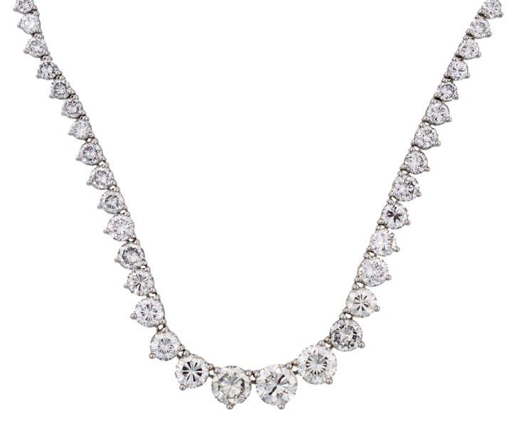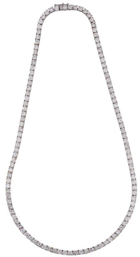 13. 18 kt. White Gold and Diamond Line Necklace, mounted with numerous round diamonds, total wt. approx. 23.08 cts.; l. 18 in. [$15,000 - 18,000]