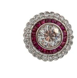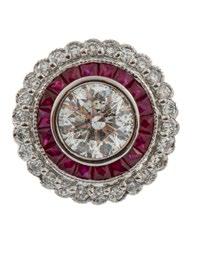 14. Pair of 18 kt. White Gold, Diamond and Ruby Earrings, 2 center round diamonds, wt. approx. 1.00 ct. and 1.02 cts.; surrounded by numerous diamonds and rubies; dia. 1/2 in. [$3,000 - 4,000]