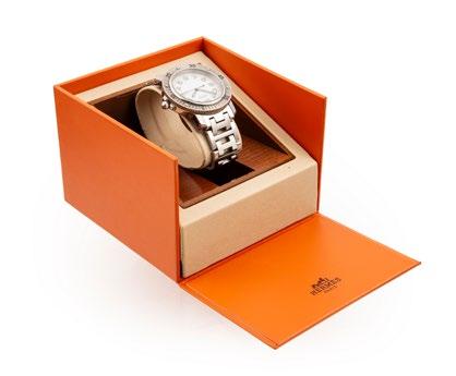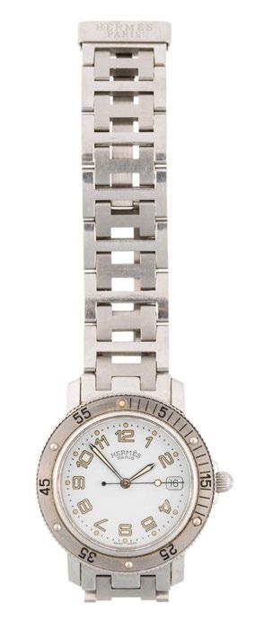 16. Hermes “Clipper” Stainless Steel Watch, ref. CL7.710, 38mm., quartz movement, white dial, rotating bezel, date function, sapphire crystal, deployant bracelet, extra links, box and instructions [$400 - 600]