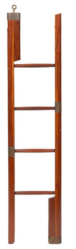 43. Antique English Brass Mounted Mahogany Folding Library Ladder, 19th c., hanging ring on top, four rungs, 79 1/2 x 6 x 3 in. (201.9 x 15.2 x 7.6 cm.), Frame: 67 x 15 1/2 x 3 in. (170.2 x 39.4 x 7.6 cm.)