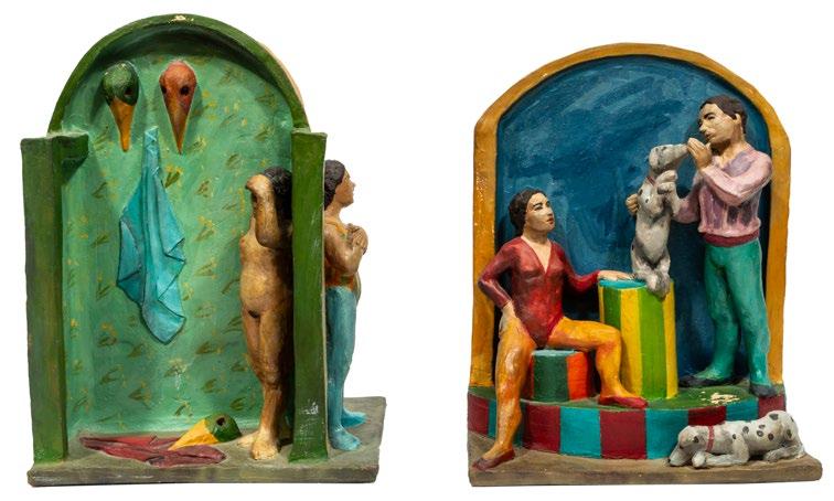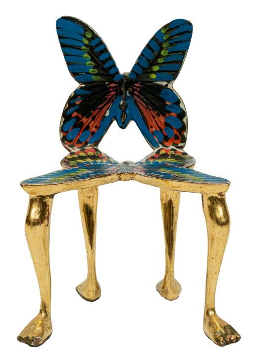 79. Pedro Friedeberg, Mexican, b. 1936, “Miniature Butterfly Chair”, gilt carved wood and mixed media, signed on underside of seat, 6 1/2 x 4 3/8 x 4 1/4 in. (16.5 x 11.1 x 10.8 cm.)
