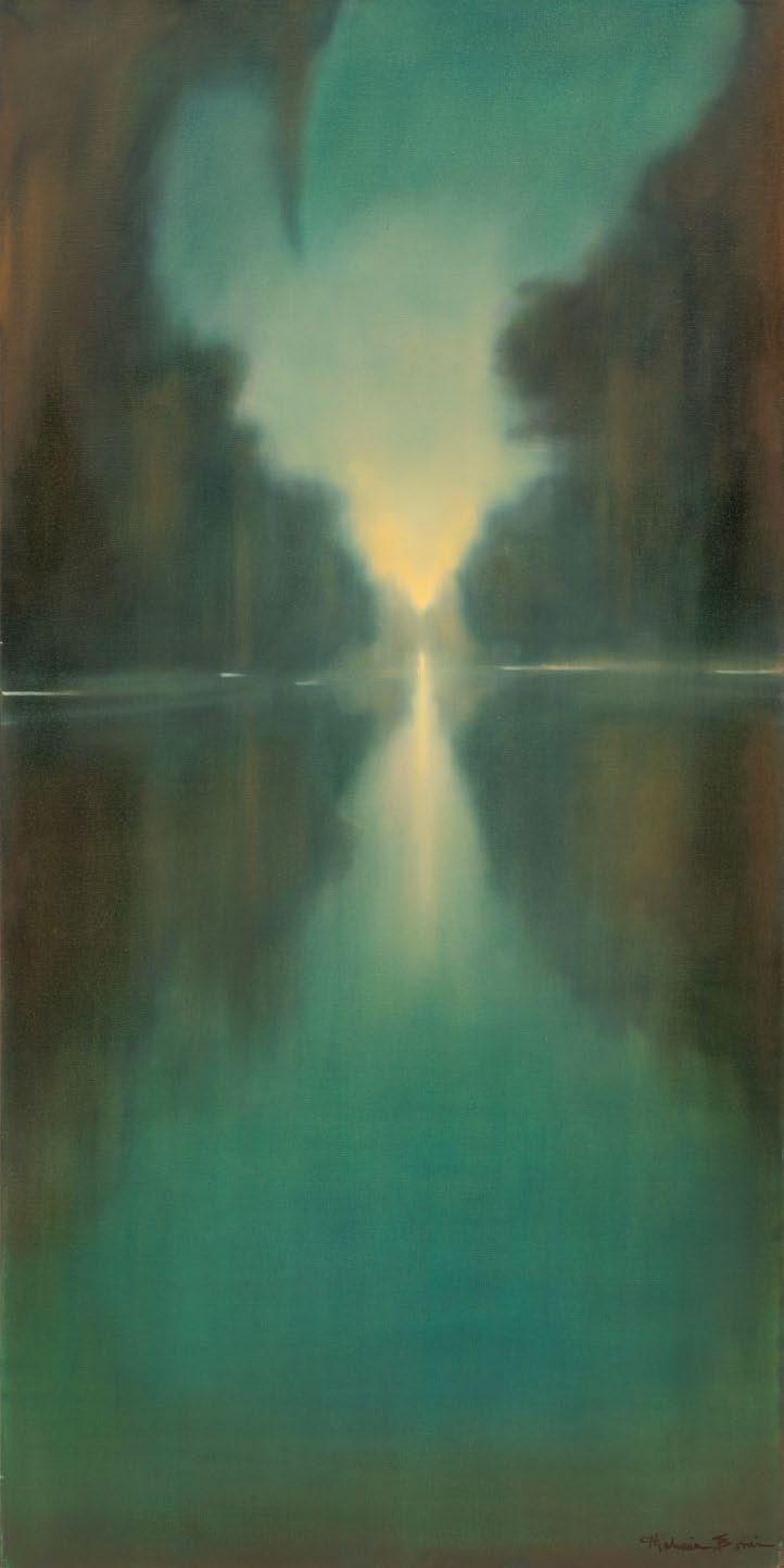 407. Connor McManus, American/Louisiana, b. 1992, “Rustling Wood”, acrylic enhanced giclée laid on birch panel, signed lower right, framed. 40 x 60 in. (101.6 x 152.4 cm.), Frame: 41 3/4 x 61 1/2 x 2 1/4 in. (106 x 156.2 x 5.7 cm.) [$1,000 - 1,500]