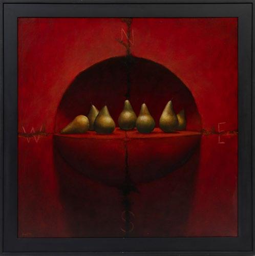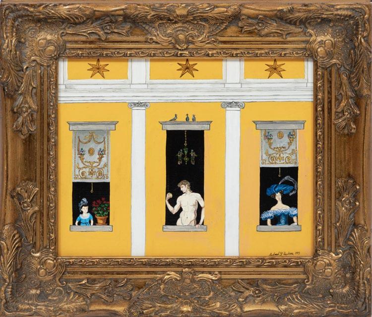 402. James Michalopoulos, American/ Louisiana, b. 1951, “Laboria Majoria”, oil on canvas, signed “Mitchell” lower left, signed and personalized en verso, titled, inscribed “1602” and artist card with title on stretcher, framed. 48 x 24 in. (121.9 x 61 cm.), Frame: 49 x 25 x 1 in. (124.5 x 63.5 x 2.5 cm.)