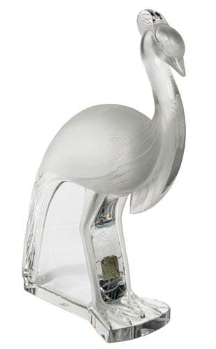 63. Lalique Crystal Louisiane Crane, etched “Lalique France”, h. 13 3/4 in., w. 9 in., d. 3 3/4 in. [$400 - 600]