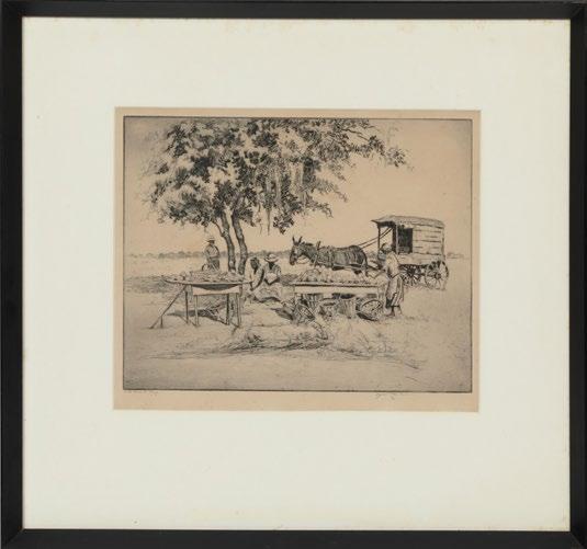 71. Gerald Kenneth Geerlings, American, 18971998, “Grand Canal, America”, etching on paper, 1933, pencil-signed lower right margin, inscribed in plate “CHICAGO FAIR 1933” lower right, Chicago Society of Etchers blind stamp lower left, unframed. 12 x 9 in. (30.5 x 22.9 cm.) [$600 - 800]