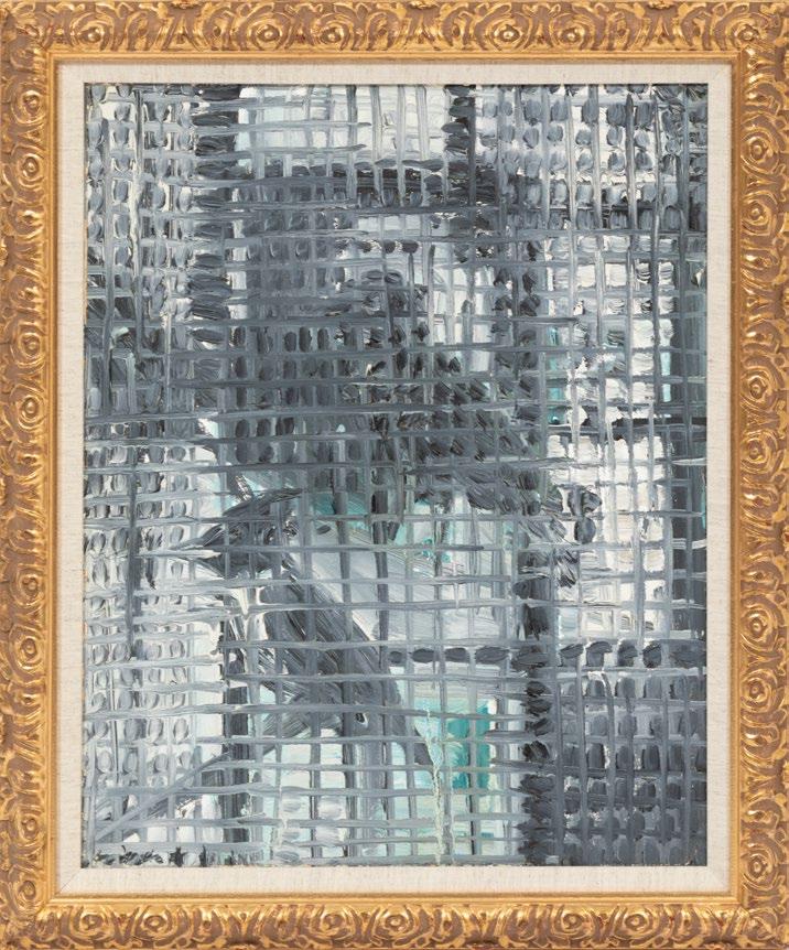 395. Hunt Slonem, American/Louisiana, b. 1951, “Finch Cage III”, oil on canvas, 1987, signed, titled and dated en verso, “Jason McCoy Inc., New York” gallery label with artist and title on backing board, framed. 20 x 16 in. (50.8 x 40.6 cm.), Frame: 24 x 20 x 2 1/2 in. (61 x 50.8 x 6.4 cm.)