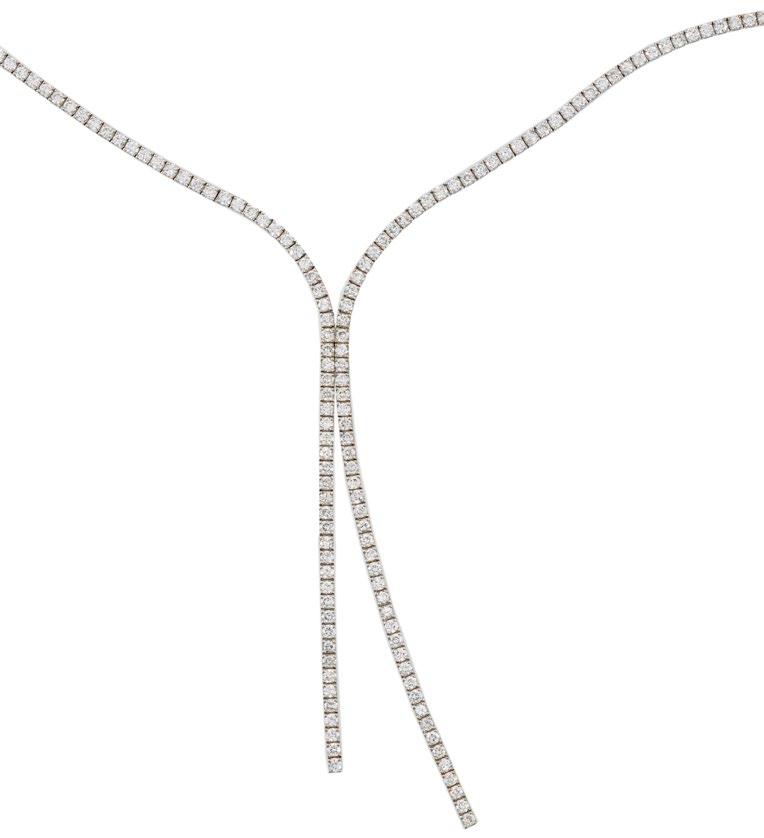 10. 18 kt. White Gold and Diamond Lariat Necklace, mounted with numerous round diamonds, total wt. approx. 4.51 cts.; l. 16 1/2 in.; l. (inc. lariat) 19 1/2 in. [$4,000 - 6,000]