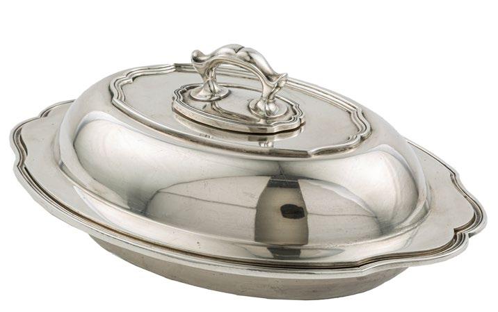 36. Reed & Barton “Hepplewhite” Sterling Silver Covered Vegetable Dish, No. 560, cover with removable handle, H. 4 3/4 in., l. 10 7/8 in., weight 34.85 troy ozs. [$600 - 900]