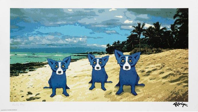 405. After George Rodrigue, American/Louisiana, 1944-2013, “Paradise Island”, silkscreen, 2016, pencil-inscribed “Printer’s Proof”, stamped signature and artist estate stamp lower margin, unframed. Sheet: 23 x 40 in. (58.4 x 101.6 cm.) [$500 - 700]