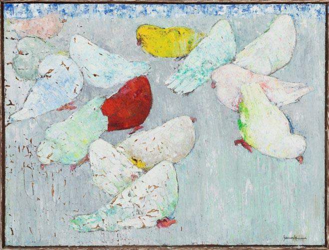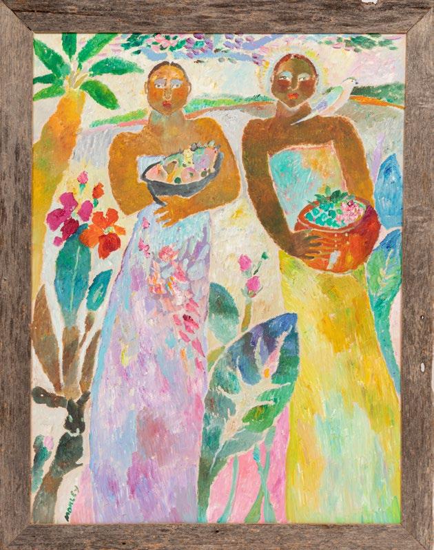 78. Gesner Armand. Haitian, 1936-2008, “La Voliere”, oil on masonite, signed lower right, framed. 24 x 32 in. (61 x 81.3 cm.), Frame: 24 3/4 x 32 3/4 x 1 3/8 in. (62.9 x 83.2 x 3.5 cm.) [$500 - 700]