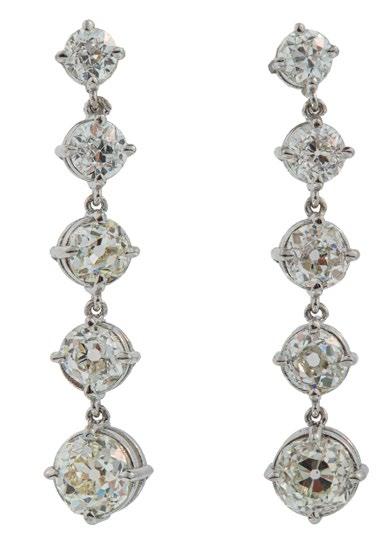 8. 18 kt. White Gold and Diamond Dangle Earrings, mounted with 10 graduated round diamonds, total wt. approx. 4.06 cts.; l. 1 1/4 in. [$2,500 - 3,500]