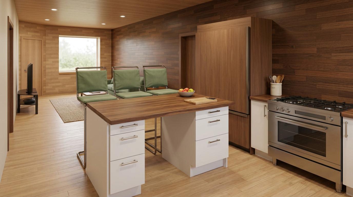 The project deliverables included a comprehensive site plan, floor plan, and elevations. Revit was used for core BIM modeling and construction documentation , while Gemini and AI Rendering were utiliz ed to produce high-fidelity interior and exterior perspectives. The final solution demonstrates a strong balance between technical accuracy and conceptual design intent.