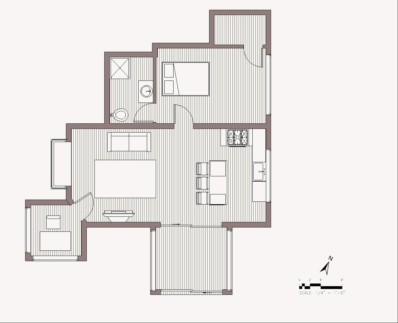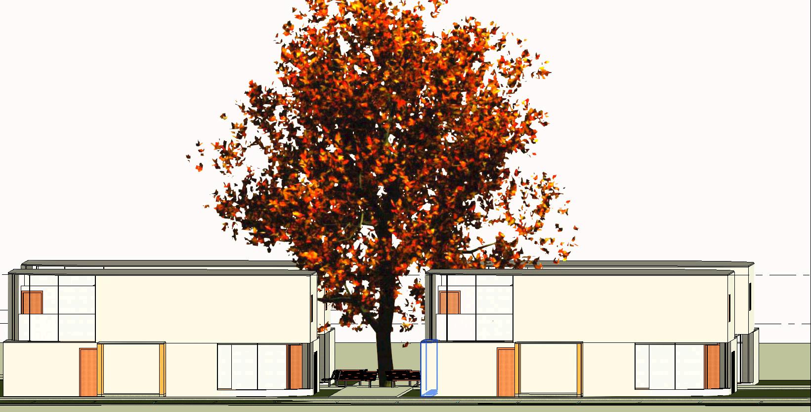 Site planning incorporated usable, landscaped areas with dedicated private outdoor space for each residence. The final solution included a furniture plan, reflected ceiling plan, elevations, perspectives, and a detailed FF&E specification package.