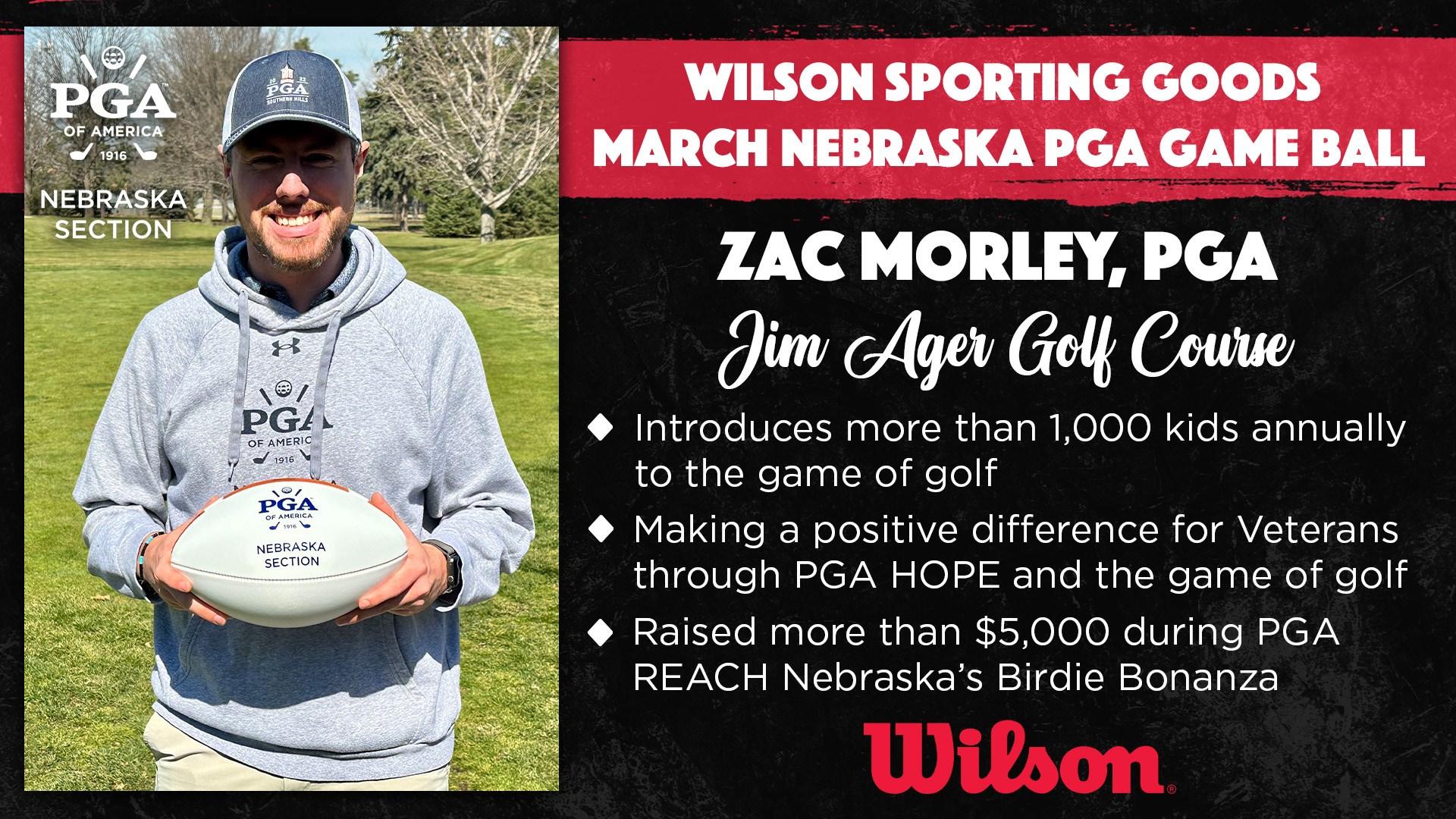 The Nebraska Section PGA has announced Zac Morley, PGA the recipient of the Wilson Sporting Goods Monthly Game Ball for the month of March