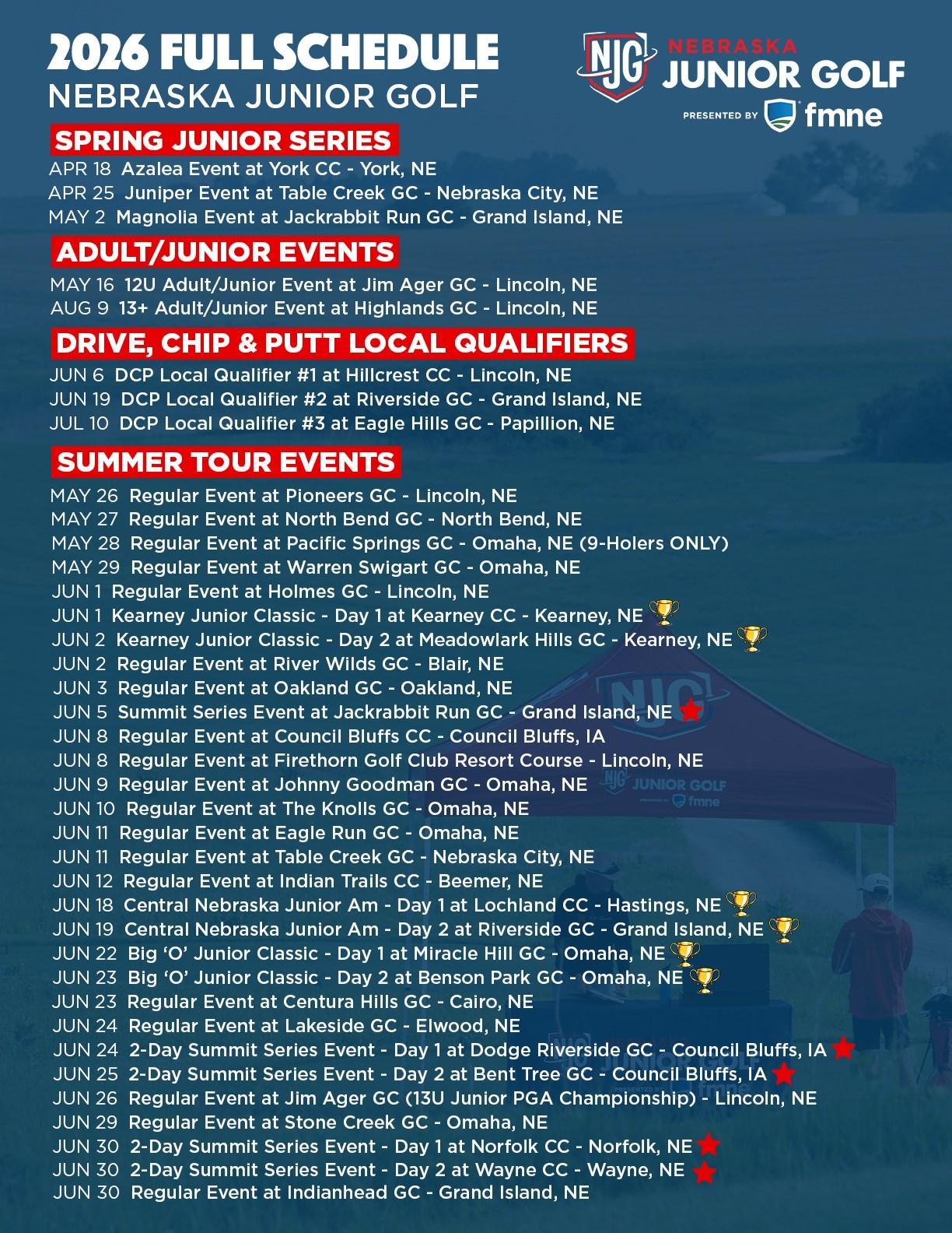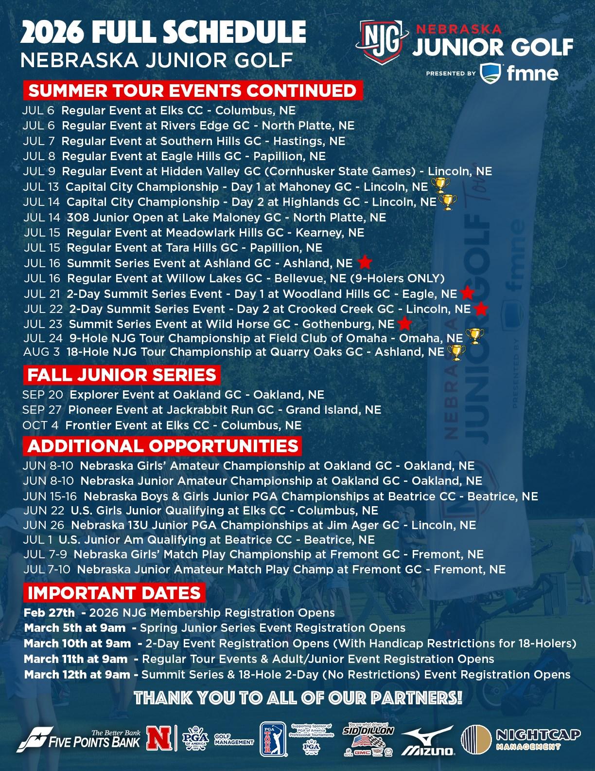 • Regular NJG Tour and Adult/Junior event registration opens