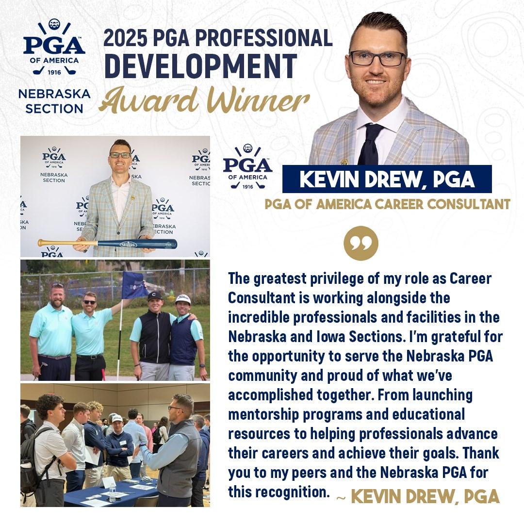 The award is the highest honor presented by the Section and recognizes a PGA Professional who demonstrates outstanding leadership, strong moral character, and a significant record of service to the game of golf, the PGA of America, and their community. Collins exemplifies those qualities daily through his work at Wild Horse and his ongoing commitment to growing the game throughout Nebraska.