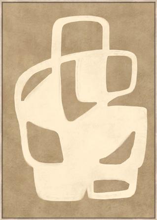 Gorgeous three dimensional texture of these prints relates earthy and organic feelings, in creating a cozy, inviting home. Substantial in size, curvaceous forms interlock with bold imperfect lines and shapes to create an artwork that is strikingly confident and interesting, yet subtle enough in its neutral tones to compliment any interior space. Encased in a shadow box frame, each piece is individually hand painted on linen canvas